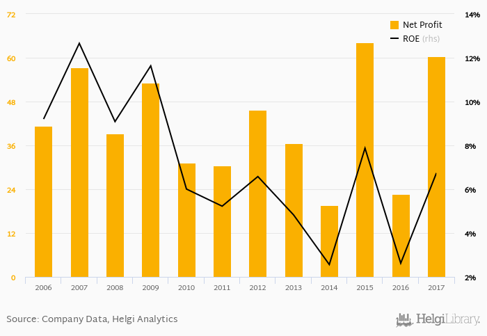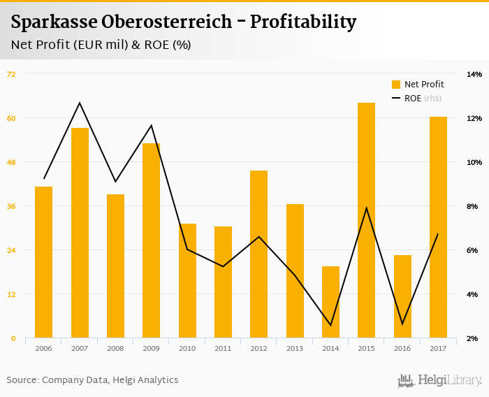 Sparkasse Oberosterreich made a net profit of EUR 60.3 mil in 2017, up 167% compared to the previous year. This implies a return on equity of 6.74%.