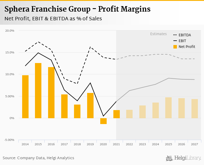 Sphera Franchise Group made a net profit of USD 18.4 mil with revenues of USD 1,000 mil in 2021, up by 290% and up by 40.7%, respectively, compared to the previous year.