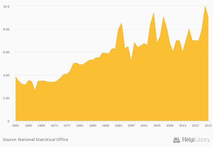 Historically, total spice consumption in Kenya reached an all time high of 10.0 kt in 2020 and an all time low of 2.64 kt in 1967.