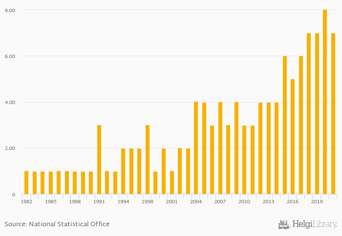 Historically, total spice consumption in Jordan reached an all time high of 8.00 kt in 2020 and an all time low of 0.987 kt in 1999. When compared to Jordan's main peers, total spice consumption in Iraq amounted to 18.0 kt, 11.0 kt in Israel, 112 kt in Saudi Arabia and 37.0 kt in Syria in 2021.