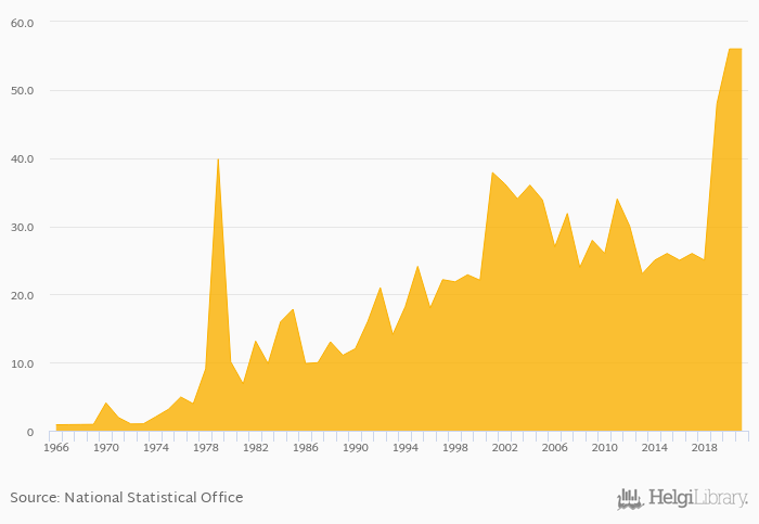 Historically, total spice consumption in South Korea reached an all time high of 56.0 kt in 2021 and an all time low of 0.870 kt in 1966. When compared to South Korea's main peers, total spice consumption in China amounted to 703 kt, 6.00 kt in Dem. People's Republic of Korea, 134 kt in Japan and 204 kt in Vietnam in 2021.