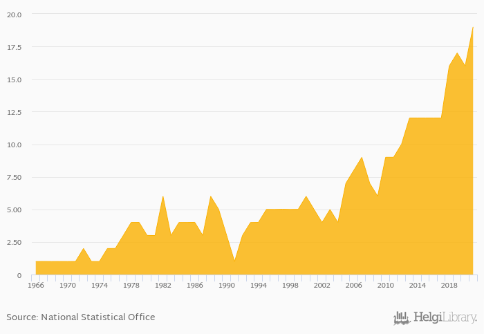 Historically, total spice consumption in Kuwait reached an all time high of 19.0 kt in 2021 and an all time low of 0.997 kt in 1968. When compared to Kuwait's main peers, total spice consumption in Bahrain amounted to 7.00 kt, 18.0 kt in Iraq, 66.0 kt in Iran and 112 kt in Saudi Arabia in 2021.