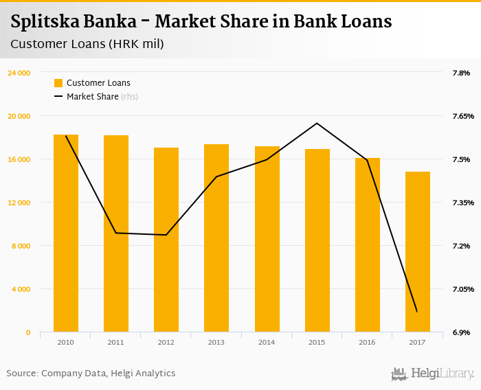 Splitska Banka's customer loans reached HRK 14,839 mil in 2017, down 7.81% compared to the previous year.