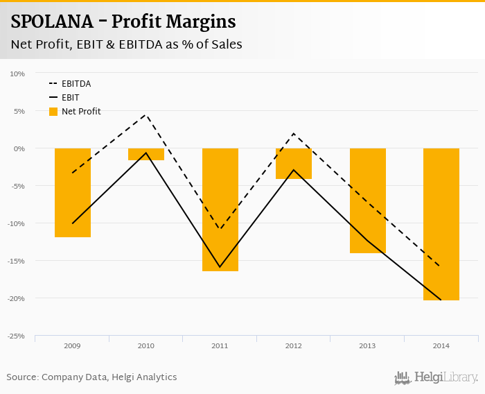 SPOLANA made a net profit of CZK -1,203 mil with revenues of CZK 5,933 mil in 2014, down by 69.7% and up by 16.9%, respectively, compared to the previous year.