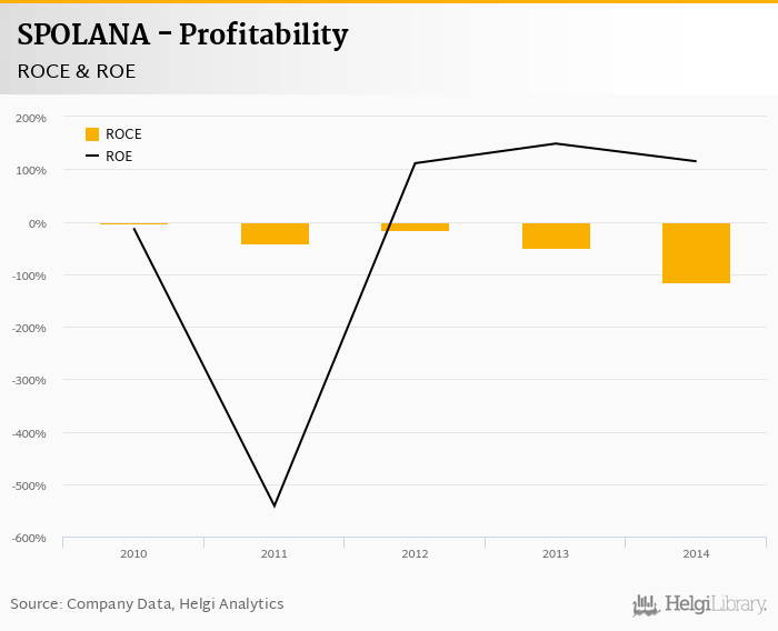 As far as SPOLANA's peers are concerned, Synthos Kralupy generated ROE of 30.2% and ROCE of 16.7% in 2014. Grupa Azoty's profitability reached 3.63% and 2.96%, respectively. DEZA operated with 21.7% and 14.2% returns in 2014.