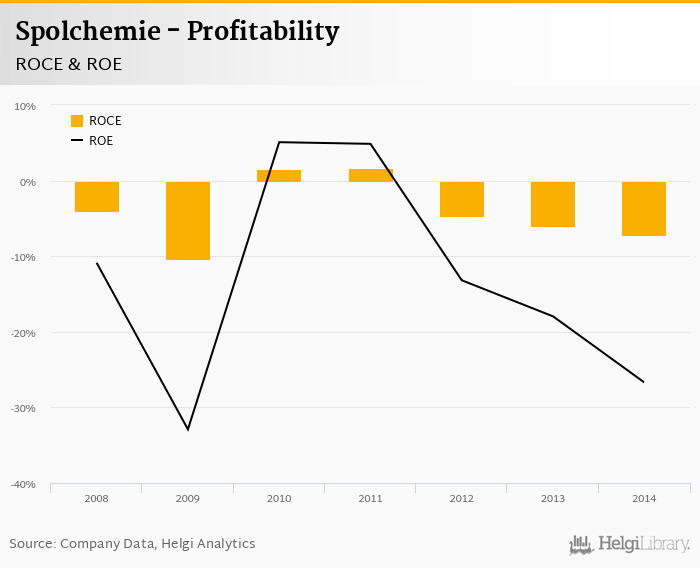 As far as Spolchemie's peers are concerned, Synthos Kralupy generated ROE of 30.2% and ROCE of 16.7% in 2014. Grupa Azoty's profitability reached 3.63% and 2.96%, respectively. DEZA operated with 21.7% and 14.2% returns in 2014.