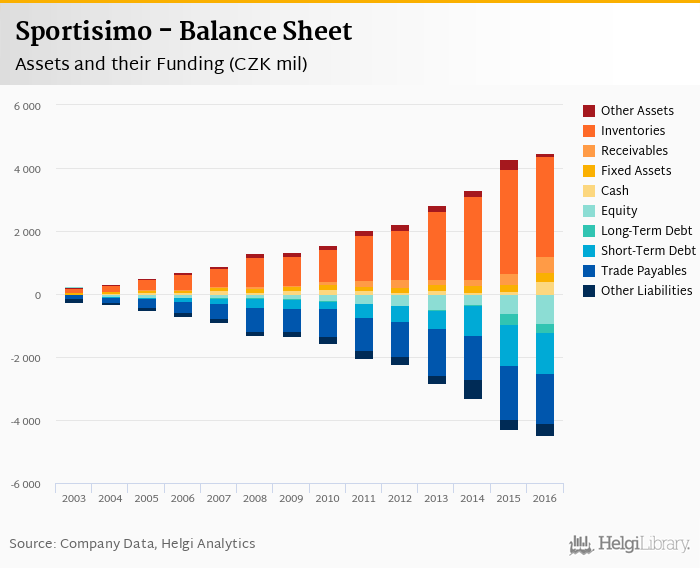 Sportisimo's total assets reached CZK 4,489 mil at the end of 2016, up 4.99% compared to the previous year.
