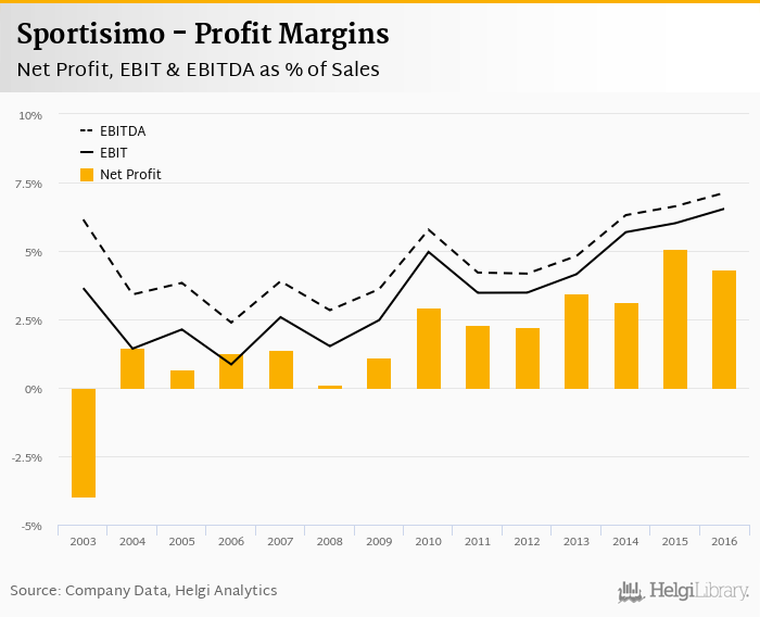 Sportisimo made a net profit of CZK 312 mil with revenues of CZK 7,201 mil in 2016, up by 2.81% and up by 20.6%, respectively, compared to the previous year.