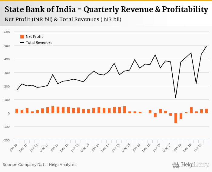 State Bank of India made a net profit of INR 33.8 bil under revenues of INR 492 bil in the third quarter of 2019, up 486% and 20% respectively when compared to the same period last year.