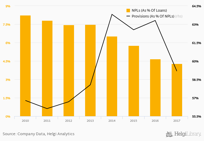 Provision coverage amounted to 59.2% at the end of 2017, down from 63.3% compared to a year earlier.