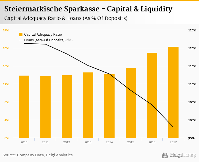 Steiermarkische Sparkasse's capital adequacy ratio reached 20.3% at the end of 2017, up from 19.0% compared to the previous year. Historically, the bank’s capital ratio hit an all time high of 20.3% in 2017 and an all time low of 13.8% in 2011.