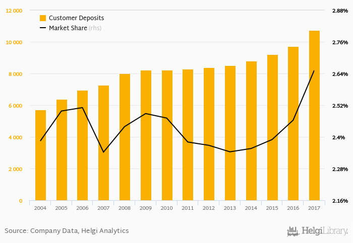 Steiermarkische Sparkasse's customer deposits reached EUR 10,739 mil in 2017, up 10.4% compared to the previous year.