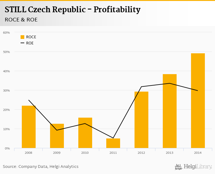 As far as STILL Czech Republic's peers are concerned, Varroc Lighting Systems Czech Republic generated ROE of 39.2% and ROCE of 30.7% in 2014. Automotive Lighting's profitability reached 43.1% and 35.9%, respectively. Continental Automotive Czech Republic operated with 17.7% and 4.79% returns in 2014.