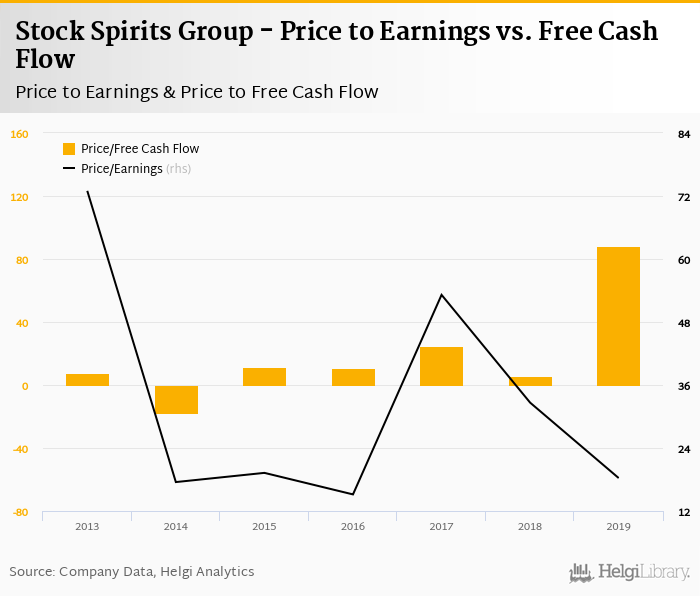 Regarding cash generated defined by the sum of net profit and depreciation, the stock traded at 13.9x at the end of 2019. When investments are excluded to get free cash flow, Stock Spirits Group traded at 88.3x.