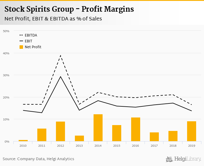 Stock Spirits Group made a net profit of EUR 28.3 mil with revenues of EUR 312 mil in 2019, up by 108% and up by 10.6%, respectively, compared to the previous year.
