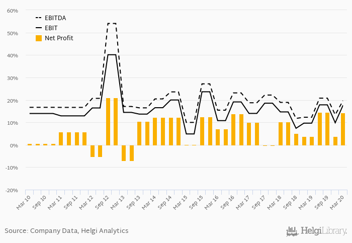 On the operating level, the EBITDA margin reached 19.7% and EBIT amounted to 17.6% of sales in 1Q2020.