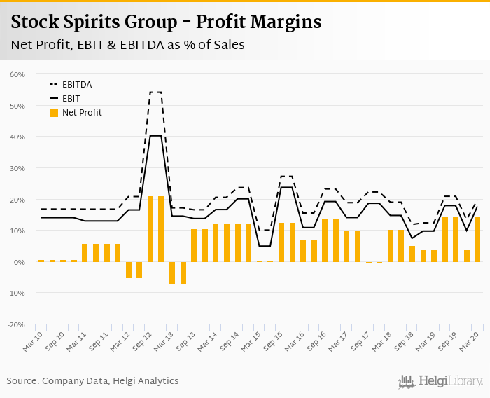 Stock Spirits Group made a net profit of EUR 11.1 mil with revenues of EUR 77.3 mil in 1Q2020, up by 285% and down by 0.337%, respectively, compared to the previous year.