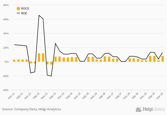 The result implies a return on equity of 12.7% and a return on invested capital of 8.07% in 1Q2020. That is compared to an average of 6.76% and 4.30% over the last five years.