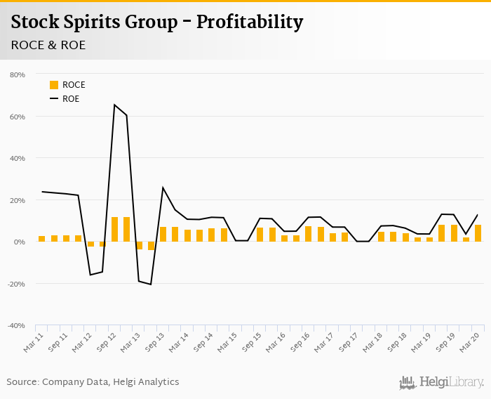 Stock Spirits Group made a net profit of EUR 11.1 mil in 1Q2020, up 285% compared to the previous year. Historically, between 1Q2010 and 1Q2020, the company's net profit reached a high of EUR 16.5 mil in 4Q2012 and a low of EUR -5.39 mil in 2Q2013.