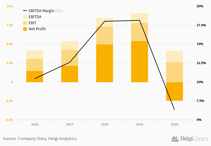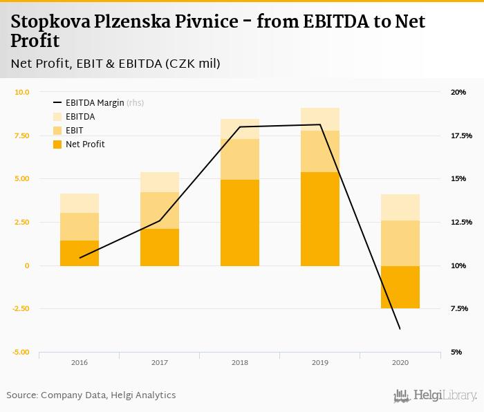 Stopkova Plzenska Pivnice made a net profit of CZK -2.44 mil with revenues of CZK 26.7 mil in 2020, down by 145% and down by 46.9%, respectively, compared to the previous year. This translates into a net margin of -9.11%.