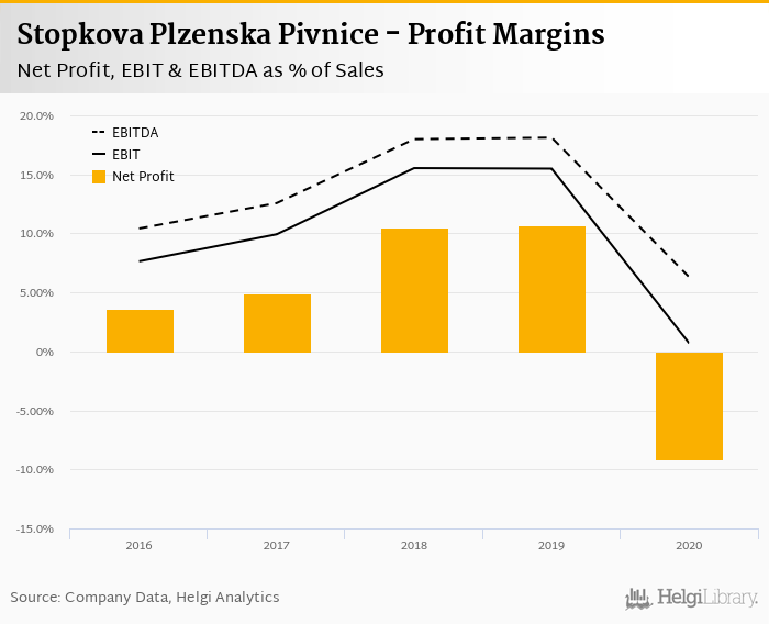 Stopkova Plzenska Pivnice made a net profit of CZK -2.44 mil with revenues of CZK 26.7 mil in 2020, down by 145% and down by 46.9%, respectively, compared to the previous year.
