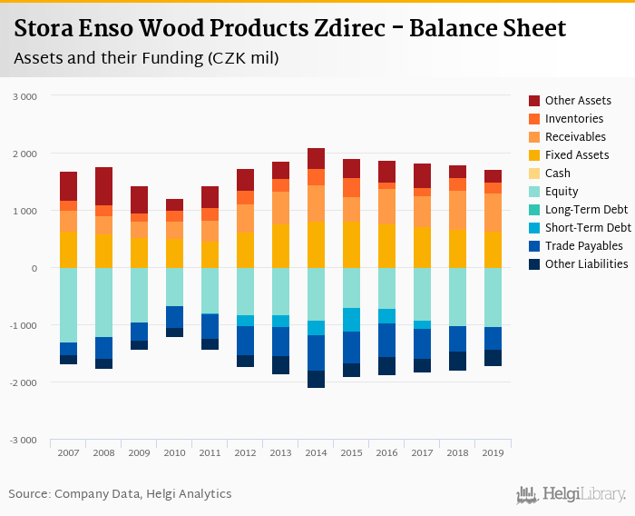 Stora Enso Wood Products Zdirec's total assets reached CZK 1,720 mil at the end of 2019, down 4.17% compared to the previous year.