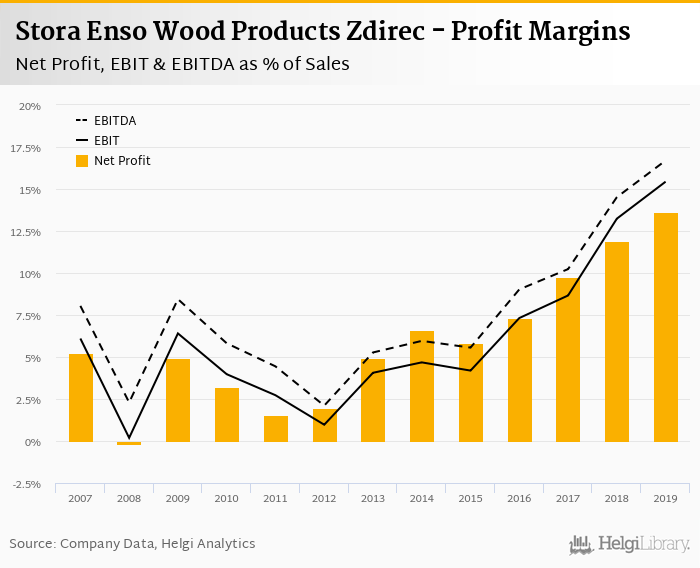 Stora Enso Wood Products Zdirec made a net profit of CZK 590 mil with revenues of CZK 4,333 mil in 2019, up by 2.42% and down by 10.6%, respectively, compared to the previous year.