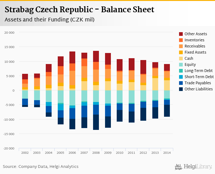 Strabag Czech Republic's total assets reached CZK 9,087 mil at the end of 2014, down 6.31% compared to the previous year.