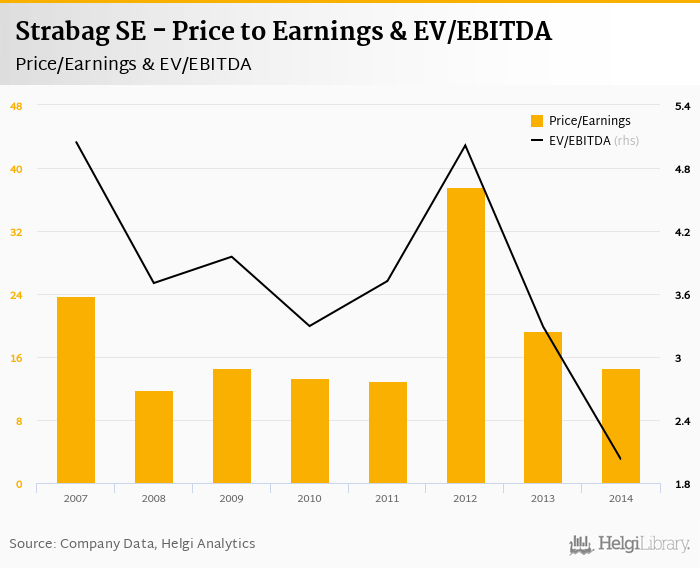 Strabag SE stock traded at EUR 18.2 per share at the end 2014 translating into a market capitalization of USD 2,258 mil.