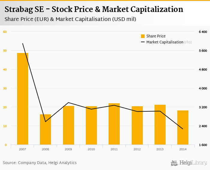 Strabag SE stock traded at EUR 18.2 per share at the end 2014 implying a market capitalization of USD 2,258 mil.