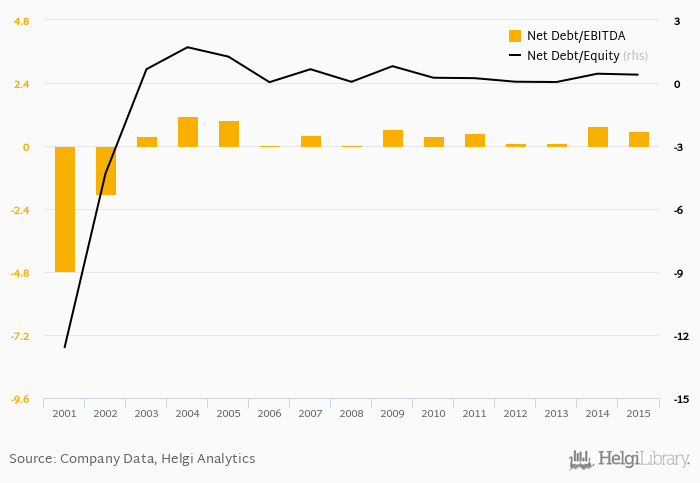 Historically, the firm’s net debt to equity reached a high of 1.70 in 2004 and a low of -12.6 in 2001 between 2001 and 2015. The average for the last five years was 0.235%.