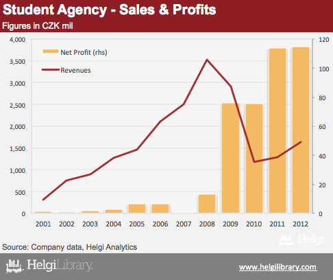 Student Agency is a Czech travel agency whose main focuses are on au-pair programmes, resale of airline tickets and bus and railway transport. In 2012, the Company reached unconsolidated sales of CZK 1.6 bil, down 54% compared to 2008. The net profit reached CZK 115 mil, the highest in the history of the Company so far.