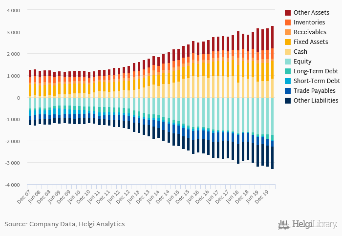 Current assets amounted to JPY 1,979 bil, or 60.1% of total assets while cash stood at JPY 859 bil at the end of 1Q2020.