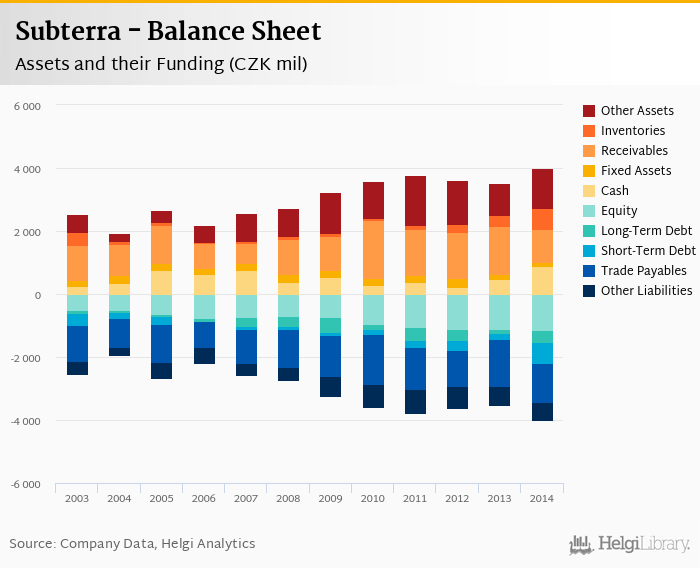 Subterra's total assets reached CZK 3,992 mil at the end of 2014, up 13.7% compared to the previous year.