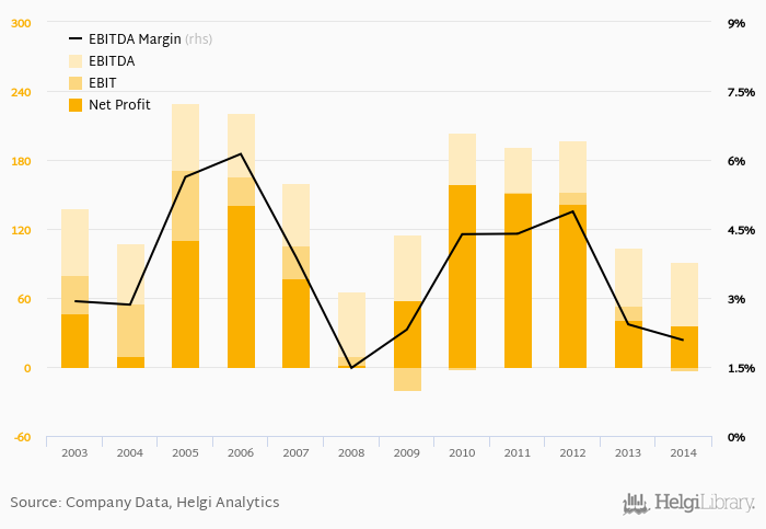 Historically, between 2003 - 2014, the firm’s net profit reached a high of CZK 159 mil in 2010 and a low of CZK 1.70 mil in 2008. Since 2009, the firm's net profit has decreased 38.3% or -9.21% a year on average.