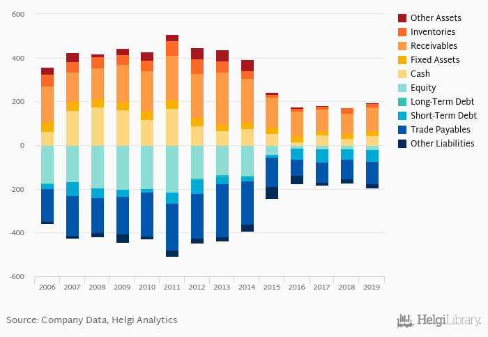 Net debt against equity is up 112 pp from five years ago (-37.0%). The ratio against EBITDA increased from -12.3x seen in 2014 to 1.29x.