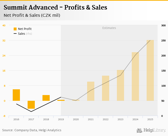 Summit Advanced made a net profit of CZK 0.547 mil in 2019, down 82.2% compared to the previous year. Total sales reached CZK 61.3 mil, which is up 63.6% when compared to the previous year.