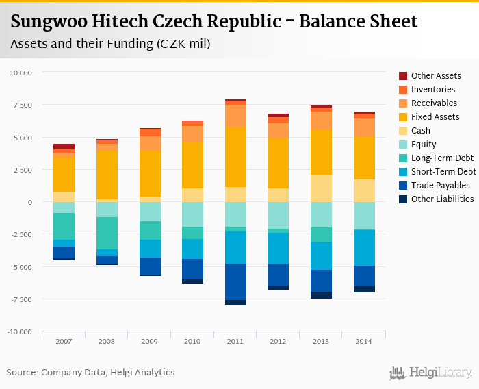Sungwoo Hitech Czech Republic's total assets reached CZK 6,992 mil at the end of 2014, down 6.4% compared to the previous year.