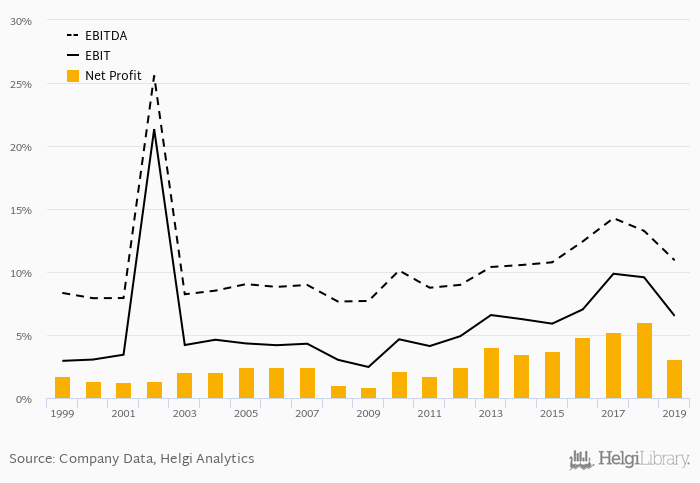 On the operating level, the EBITDA margin reached 10.9% and EBIT amounted to 6.51% of sales in 2019.