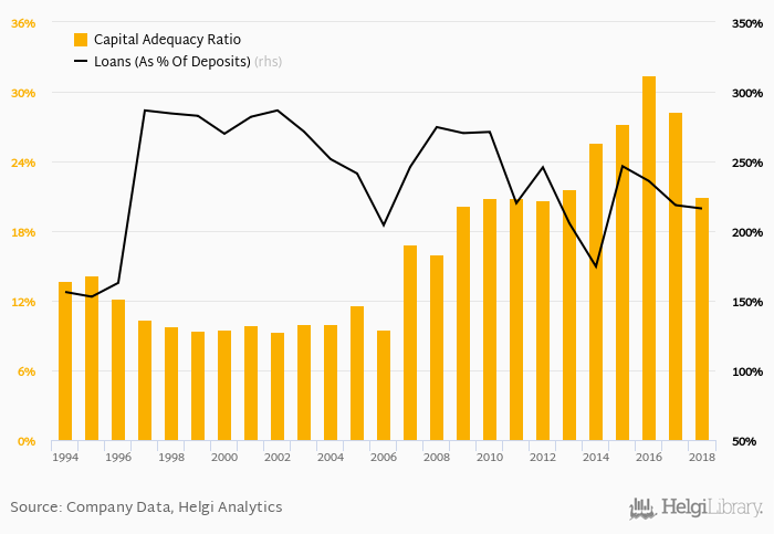 Bank's loan to deposit ratio reached 216% at the end of 2018, down from 219% when compared to the previous year. Some 10 years ago, loan to deposit ratio of the bank amounted to 275%.