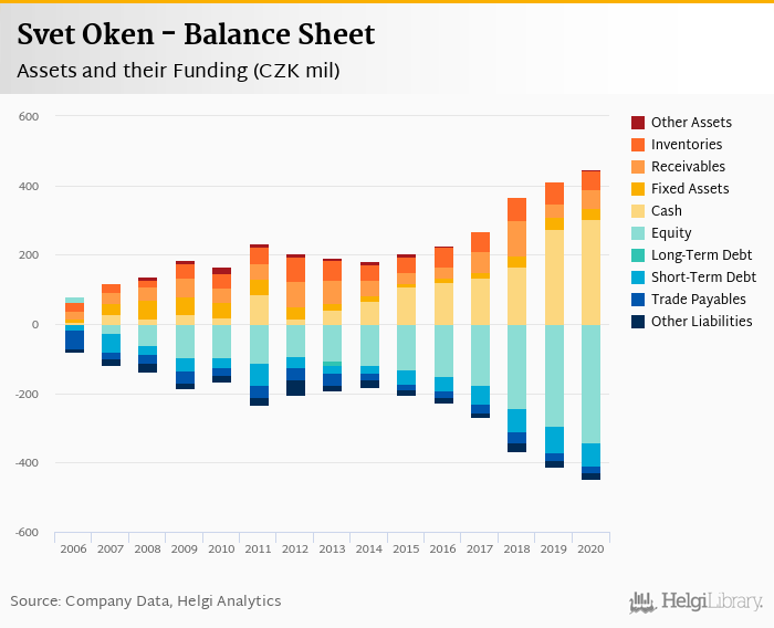Svet Oken's total assets reached CZK 447 mil at the end of 2020, up 8.32% compared to the previous year.