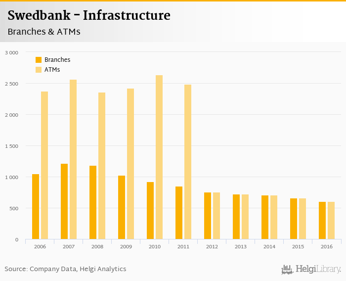 The bank operated a network of 603 branches and 603 ATMs at the end of 2016. That's compared to 1,051 branches and 2,376 ATMs some 10 years ago.