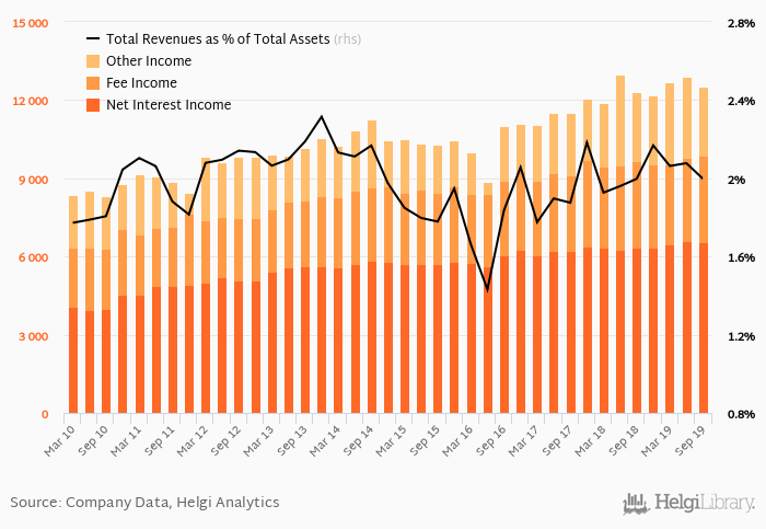 Bank's total revenues accounted for 2.00% total assets in the third quarter of 2019, down from 2.00% a year earlier.