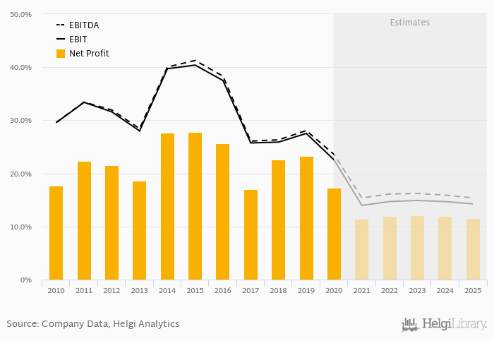On the operating level, the EBITDA margin reached 23.6% and EBIT amounted to 22.5% of sales in 2020.