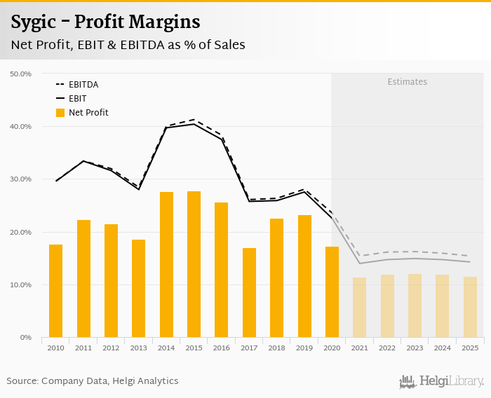 Sygic made a net profit of EUR 2,601 '000 with revenues of EUR 14,995 '000 in 2020, down by 37.3% and down by 15.7%, respectively, compared to the previous year.