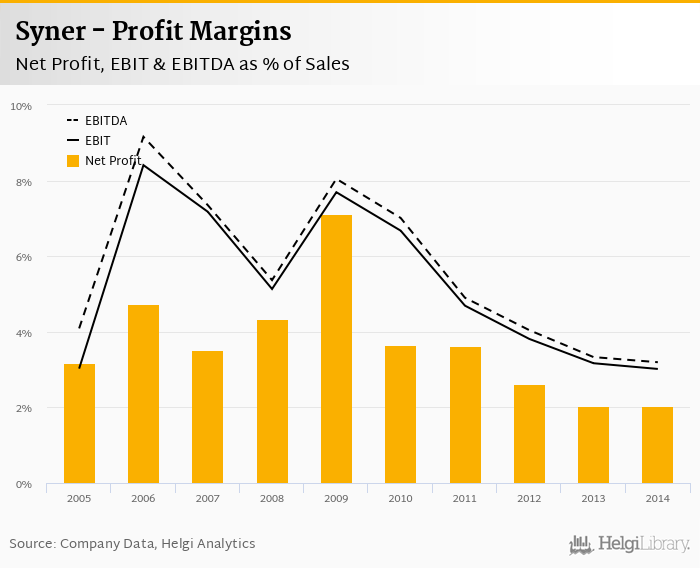Syner made a net profit of CZK 48.0 mil with revenues of CZK 2,349 mil in 2014, down by 17.3% and down by 17.6%, respectively, compared to the previous year.
