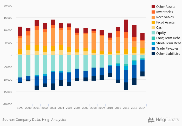 Net debt against equity is up 0.373 pp from five years ago (-0.077). The ratio against EBITDA decreased from -0.490x seen in 2009 to -0.704x.