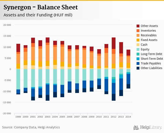 Synergon's total assets reached HUF 8,822 mil at the end of 2014, down 27.7% compared to the previous year.