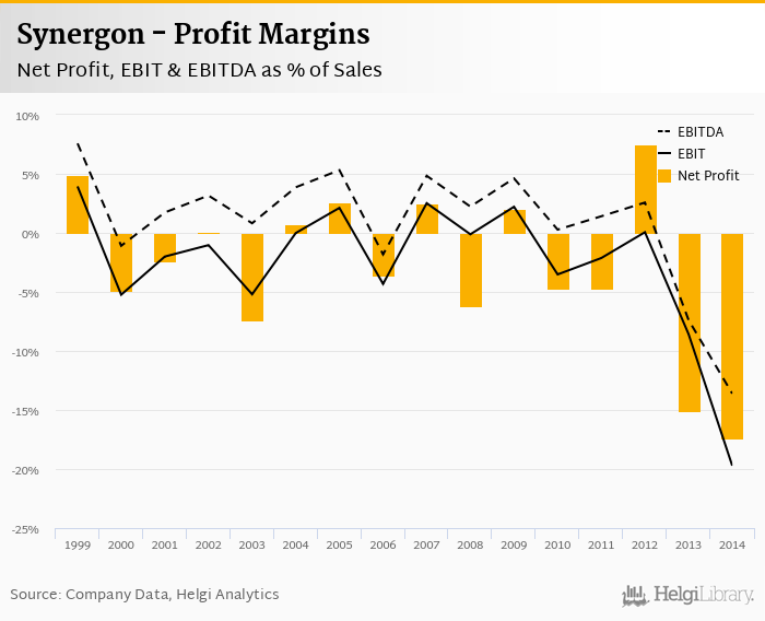 On the operating level, the EBITDA margin reached -13.6% and EBIT amounted to -19.7% of sales in 2014.
