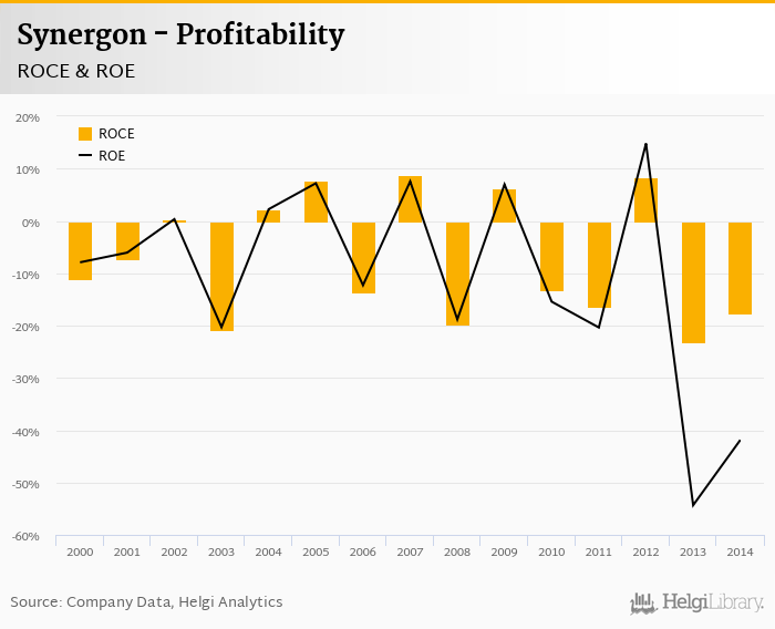 As far as Synergon's peers are concerned, Asseco Poland generated ROE of 4.66% and ROCE of 4.38% in 2014.